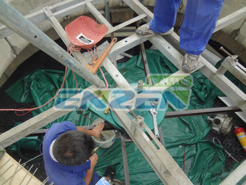 冷卻塔無(wú)電機(jī)改造進(jìn)行中